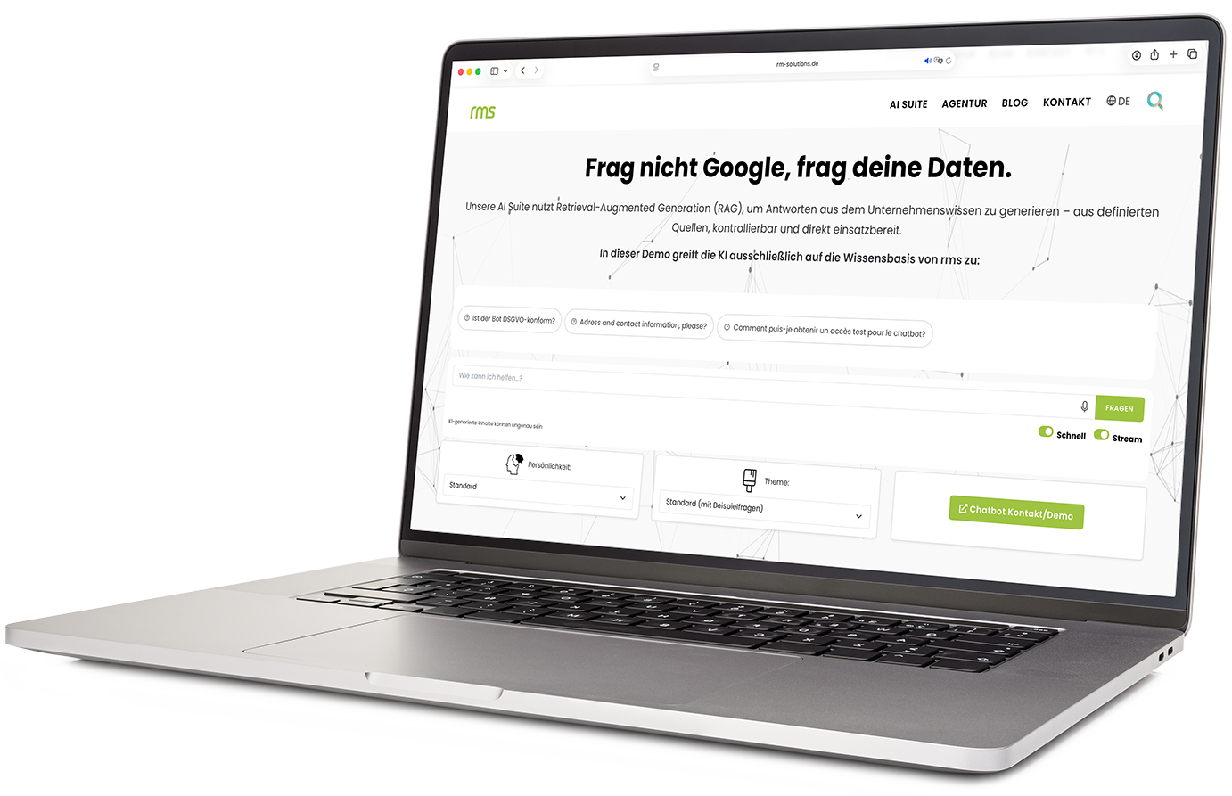 Der rms. AI Bot fungiert als interaktiver, intelligenter Produktberater.