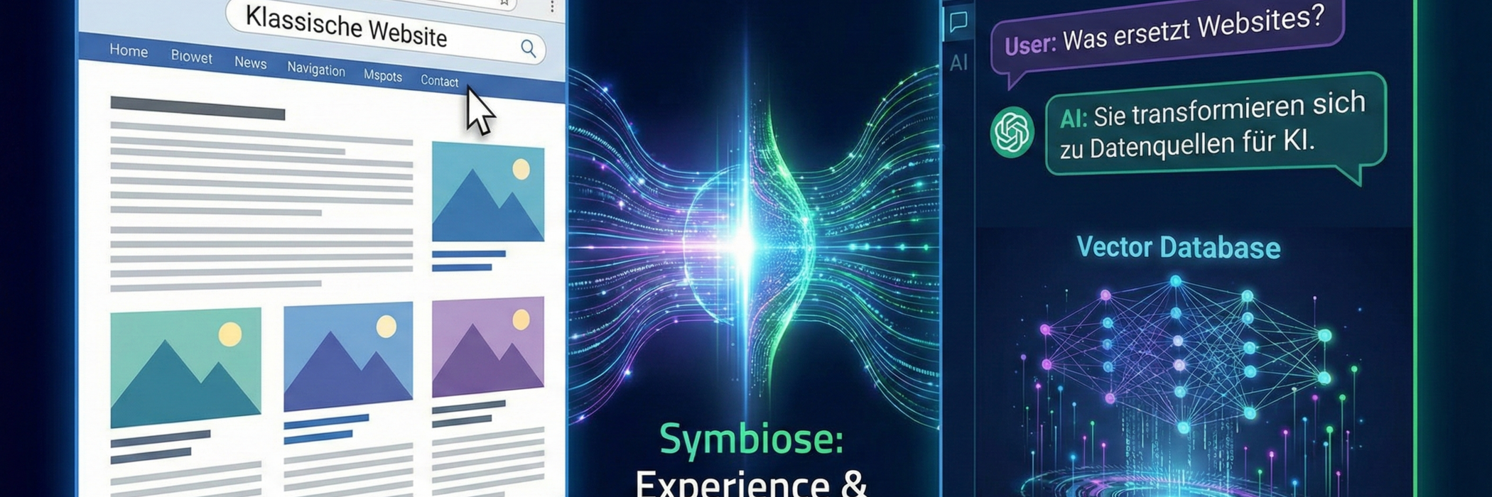 Wir erleben gerade die langsame Ablösung der Informations-Website (Seiten, die nur oberflächliche Fakten liefern). Diese werden durch KI-Antworten ersetzt. Was bleibt, sind Experience-Websites und Service-Websites. Die Website der Zukunft ist weniger ein digitaler Prospekt und mehr eine API-Schnittstelle, die sowohl für Menschen (über ein schönes UI) als auch für KIs (über strukturierte Vektordaten) perfekt lesbar ist.