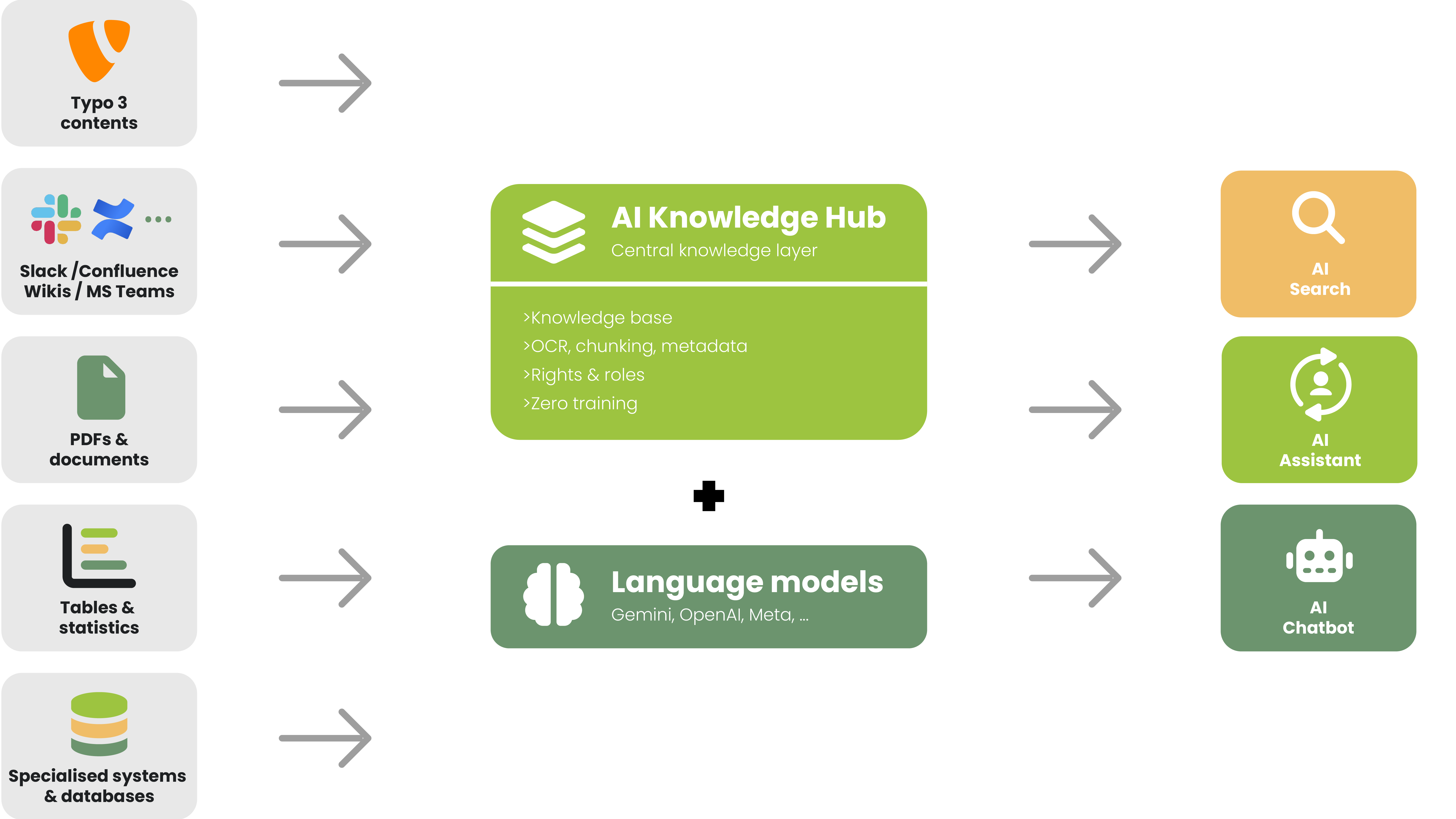 The Knowledge Hub ensures that AI does not improvise freely, but only accesses approved, up-to-date and traceable content.