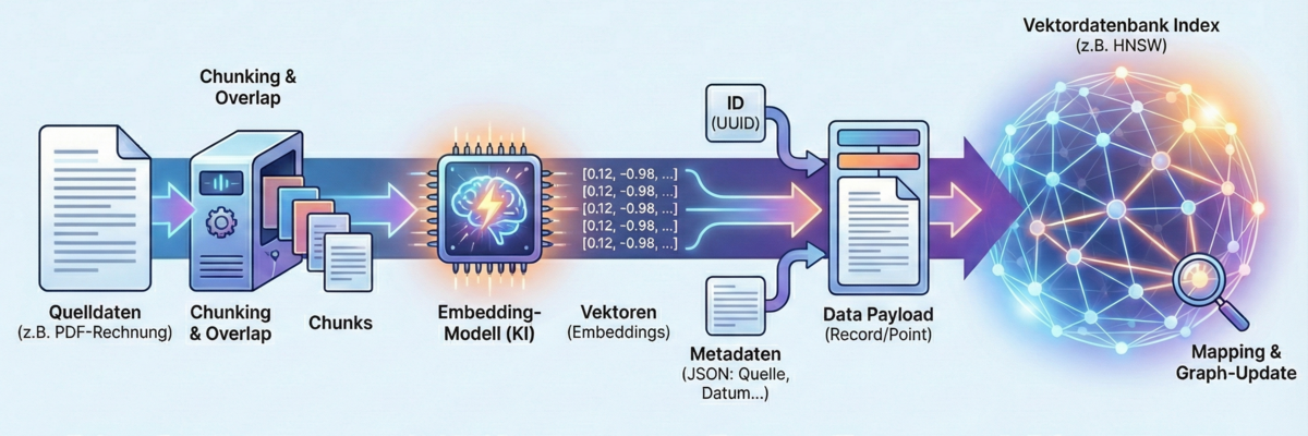 - Metadata (JSON): This is extremely important. This is where you store the original text, the source (e.g. "Page 12, Manual.pdf"), the author or the date. Without metadata, the database would later know that a vector matches, but would not be able to display the text.